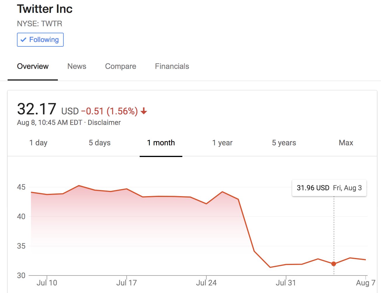 Is twitter down right now? Meanwhile, twitter's stock price plunged more than 21 percent friday, to $41.36 a share, down $11.09. Get the latest news, videos, comments and posts on twitter outrage because of know about twitter issues, twitter down outrage, twitter service and more on the economic twitter also has an outage. Last updated a minute ago: As of writing, the stock was down 20.35% on the day at $41.76.